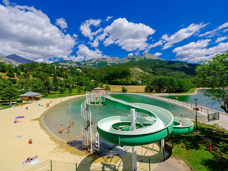 El parque de ocio, bañado por el sol de los Alpes del Sur, es el lugar ideal para refrescarse y tomar el sol.