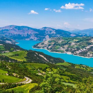 Le lac de Serre-Ponçon, entre Hautes-Alpes et Alpes de Haute Provence, surprend par sa vaste étendue d’eau, contrastant avec les montagnes environnantes. Ce paysage, digne d’un tableau méditerranéen, ne provient pourtant pas de la nature. Il résulte de l’édification du barrage, conçu après les crues dévastatrices de la Durance et de l’Ubaye au 19e siècle.
