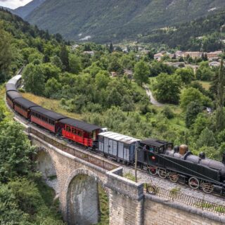 Puentes y viaductos, túneles, escolleras, estaciones y apeaderos marcan el recorrido. También disfrutará de vistas espectaculares.La línea alcanza una altitud de casi 1000 metros.